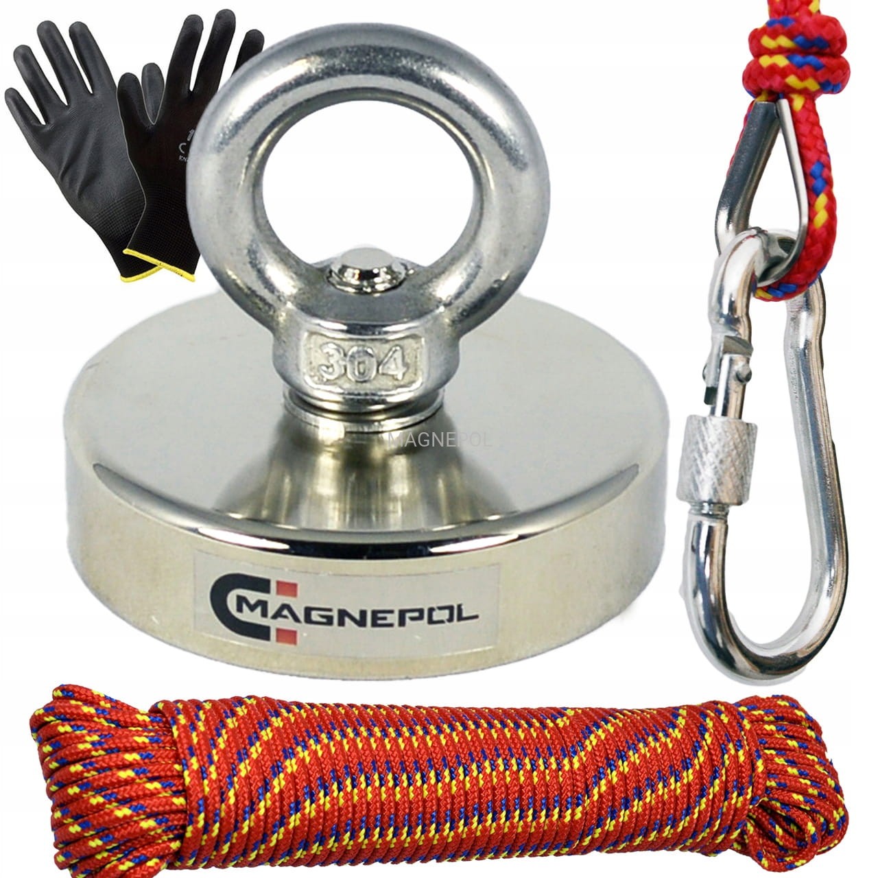 MAGNES NEODYMOWY 170kg 60x15 Lina ZESTAW do poszukiwań