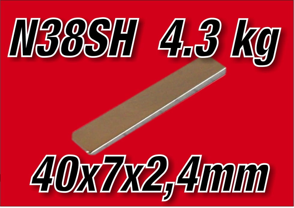 MPŁ 40x7x2,4 N38SH Magnes neodymowy płytkowy