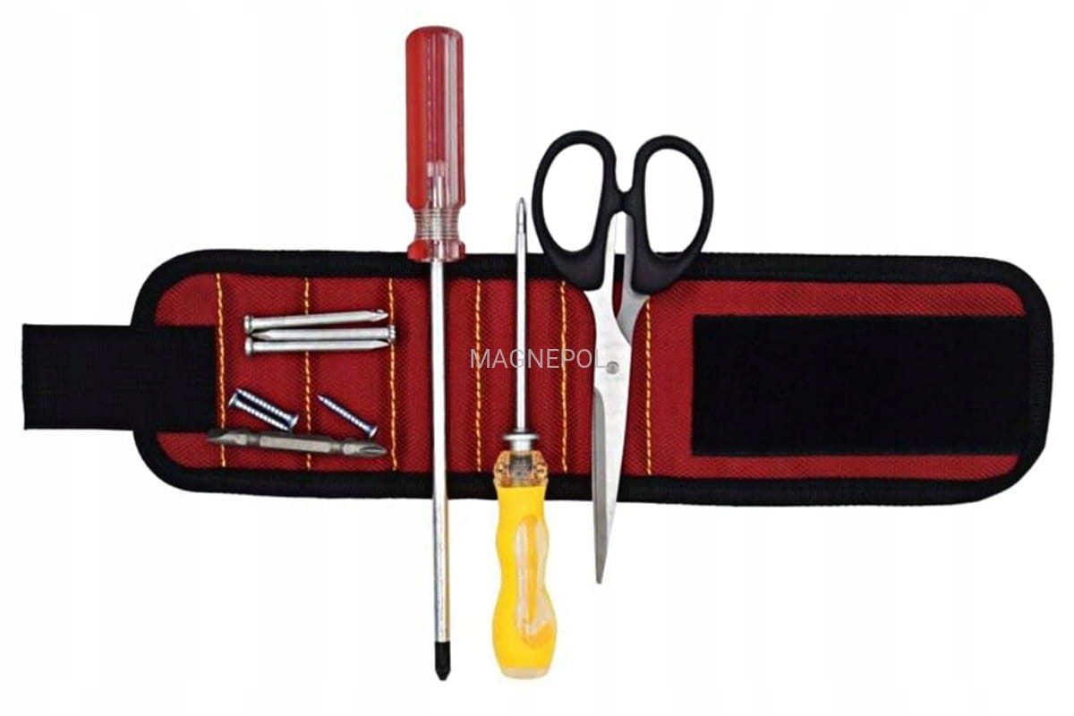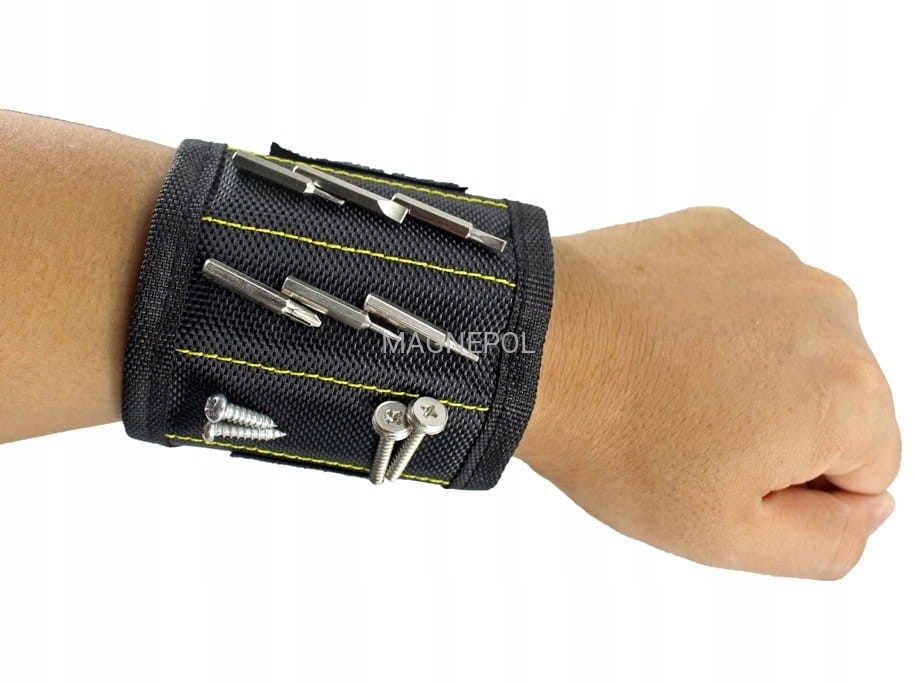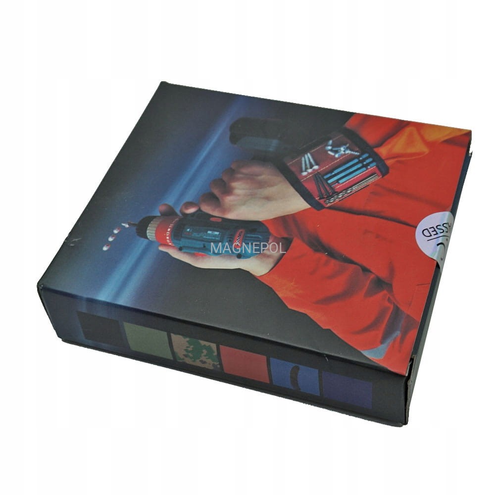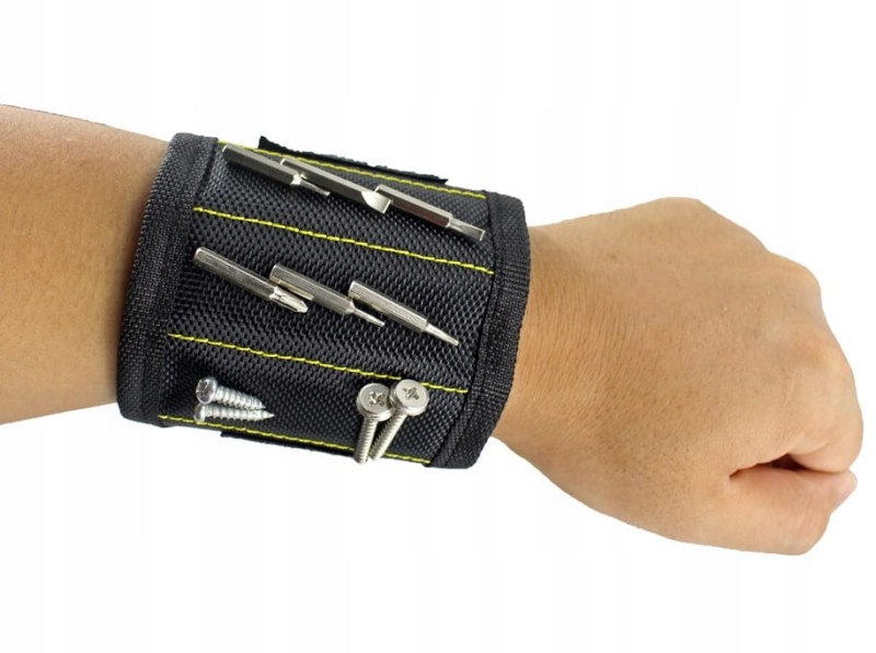 Opaska posiada w swoim wnętrzu silne magnesy neodymowe, które pozwalają przytrzymywać stalowe elementy takie jak wkręty, śruby, bity wiertła, czy gwoździe.
