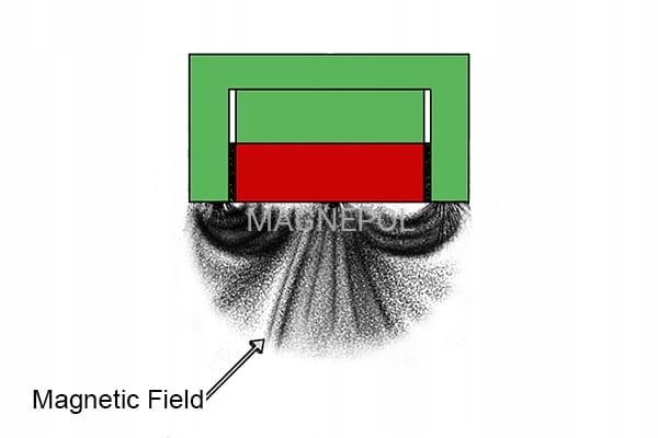Jeden biegun magnesu działa bezpośrednio na przyciągany obiekt, a drugi nasyca swoją energią obudowę / uchwyt, który w takim układzie również emituje własne pole magnetyczne.