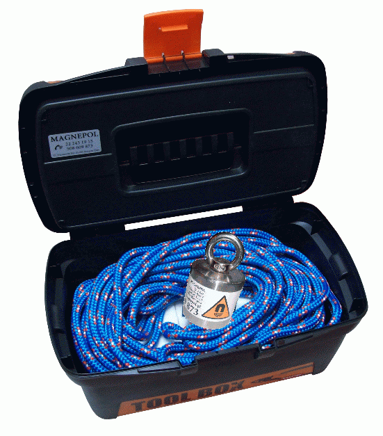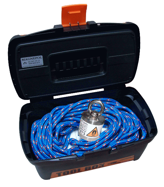 UMS 51x50/NU Uchwyt magnetyczny z uchem do poszukiwań podwodnych + skrzynka + 20m liny (1)