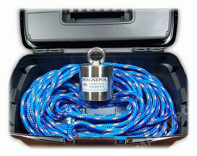 UMS 63x60/NU Uchwyt magnetyczny z uchem do poszukiwań podwodnych + skrzynka + 20m liny
